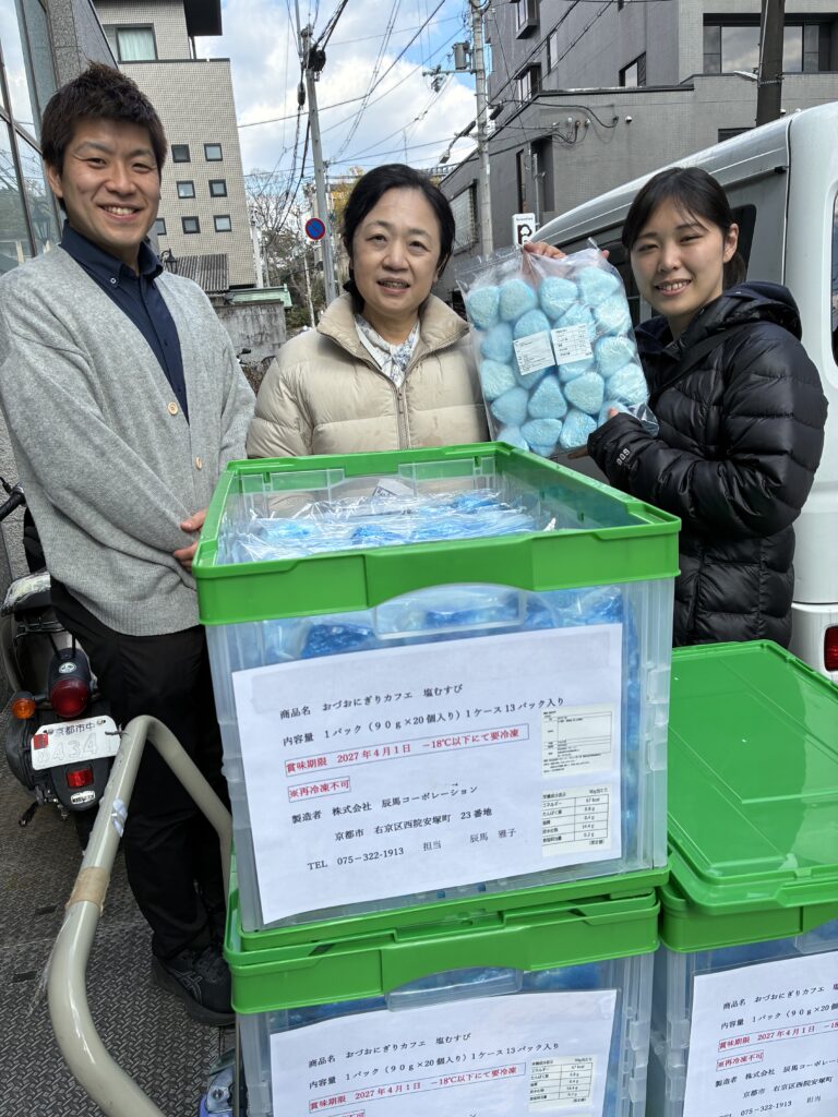 株式会社辰馬コーポレーション様より、冷凍おにぎり1,200個を本会にご寄贈いただきました。