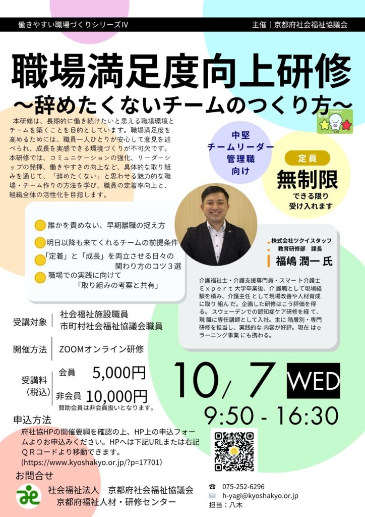 募集中の研修<中堅・チームリーダー・管理者対象> 職場満足度向上研修~辞めたくないチームのつくり方~