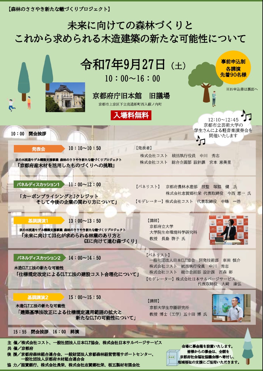 「未来に向けての森林づくりとこれから求められる木造建築の新たな可能性について」ご来場者有志 様 28,000円
